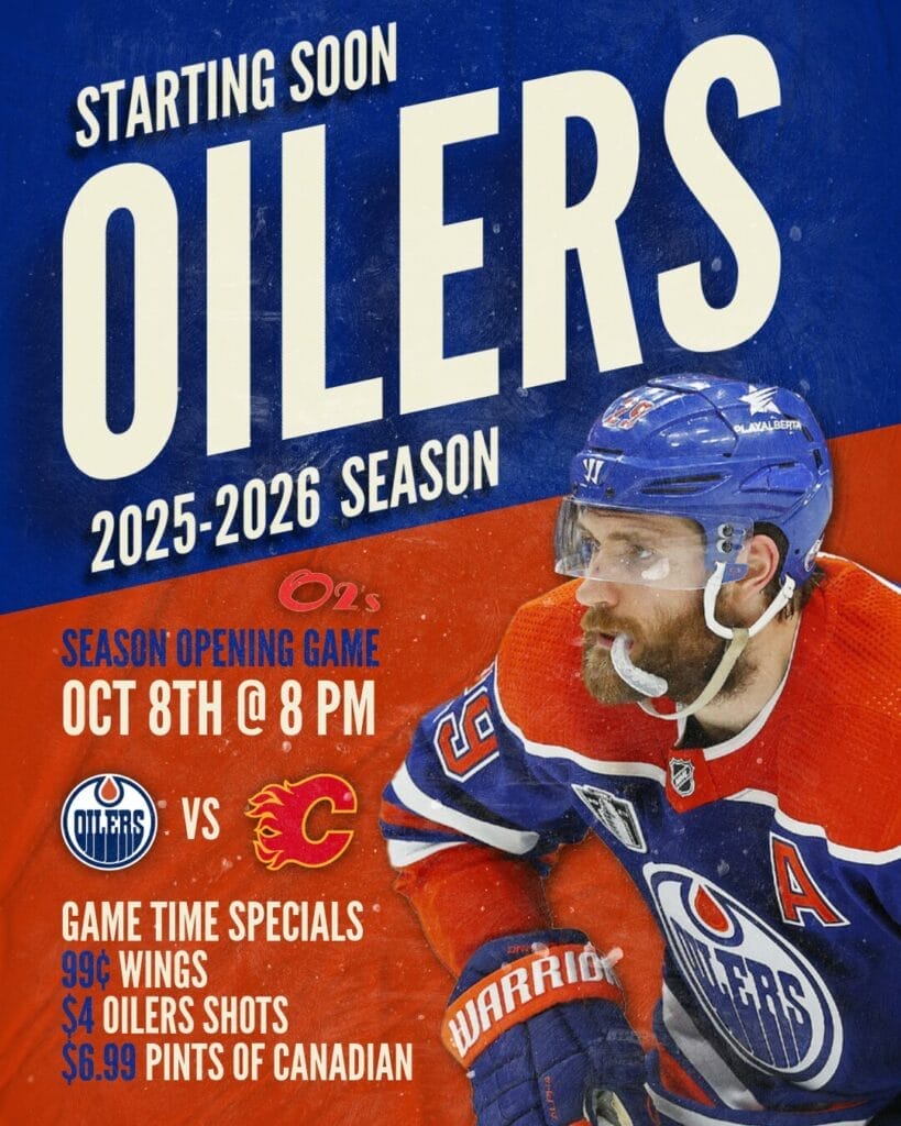 Come watch the boys start the season with a bang and get in on our game time specials! 🔥  PLUS, we are giving away an Authentic Oilers Jersey after the game on Wednesday. Make sure to join us for your chance to win!